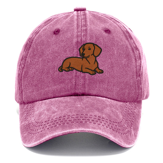 ダックスフント - 赤い滑らかでリラックスした横たわっているクラシックキャップ