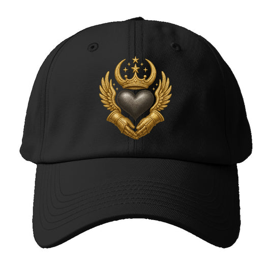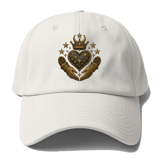 Crowned heart with Art Deco sunburst crown and geometric filigree hands cradling the - Baseball Cap