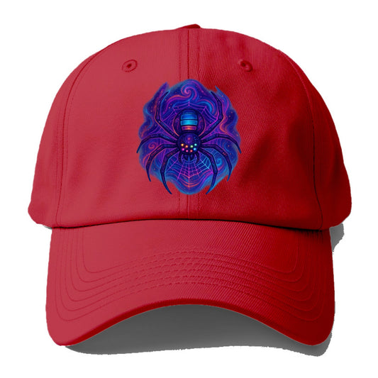 Tech spider with legs showing circuit board patterns, web glowing in neon grid - Baseball Cap