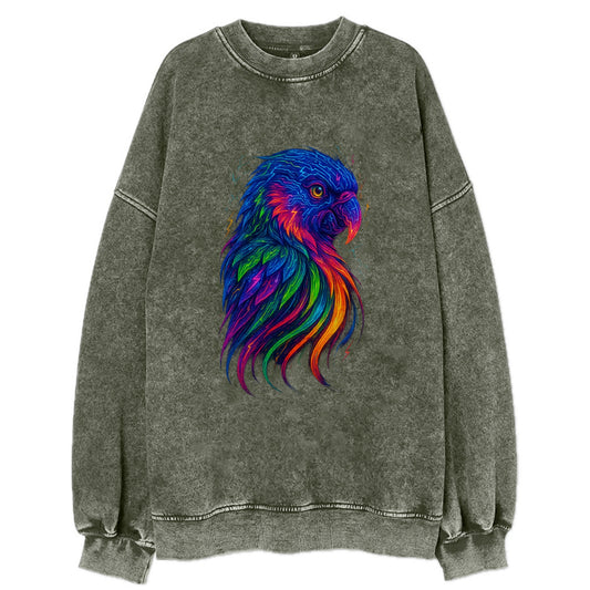 Vibrant parrot with feathers flowing into tropical rainbow streams, every - Vintage Sweatshirt