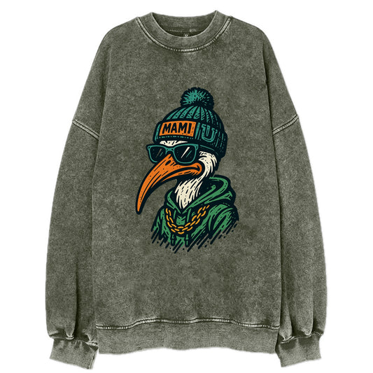 Coral Gables Ibis wearing Miami beanie with U patch - Vintage Sweatshirt