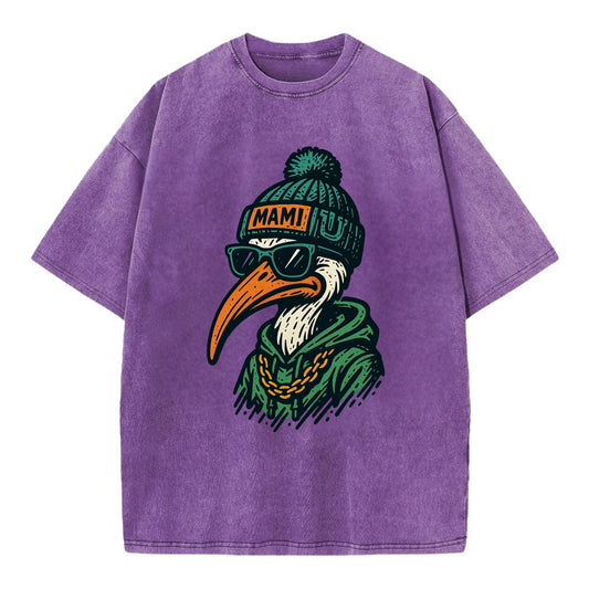 Coral Gables Ibis wearing Miami beanie with U patch - Vintage T-shirt