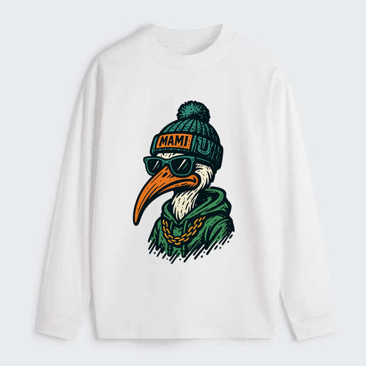 Coral Gables Ibis wearing Miami beanie with U patch - Classic Long Sleeve Shirt