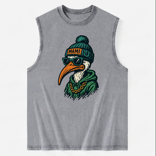 Coral Gables Ibis wearing Miami beanie with U patch - Vintage Washed Tank