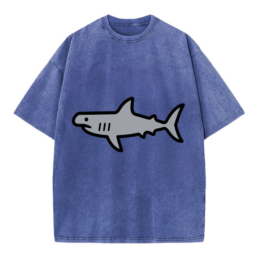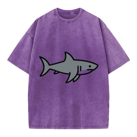 Great White Shark - Gray predator flat side profile - Vintage T-shirt