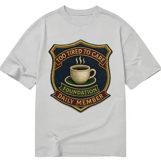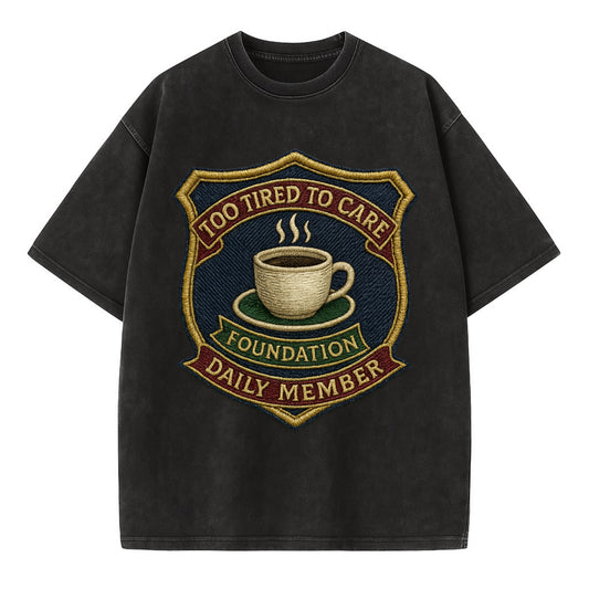 Crest with coffee cup - Too Tired To Care Foundation - Daily Member - exhausted - Vintage T-shirt