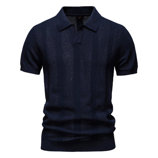 Men's Knitted Stripe Polo Shirt - Summer Casual Style