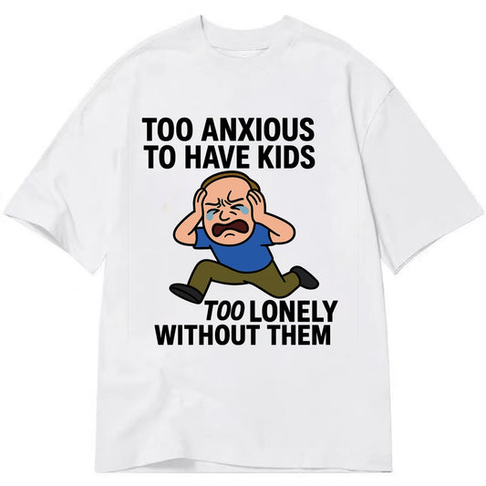 Person paralyzed between two fears - Too anxious to have kids, too lonely - Vintage T-shirt