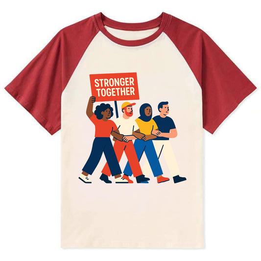 Peaceful protesters marching with linked arms - Stronger Together - - Contrast Raglan T-shirt
