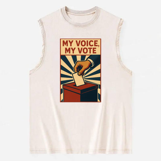 Hand dropping ballot into box with determination - My Voice, My Vote - - Vintage Washed Tank