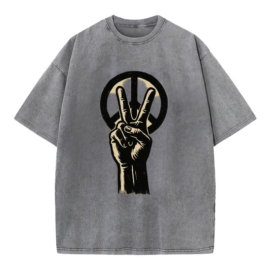 Peace sign hand gesture - anti-war movement ink brushstrokes - Vintage T-shirt