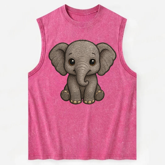 Baby Elephant - gray wrinkly, tiny trunk, large floppy ears, kind dark eyes, - Vintage Washed Tank