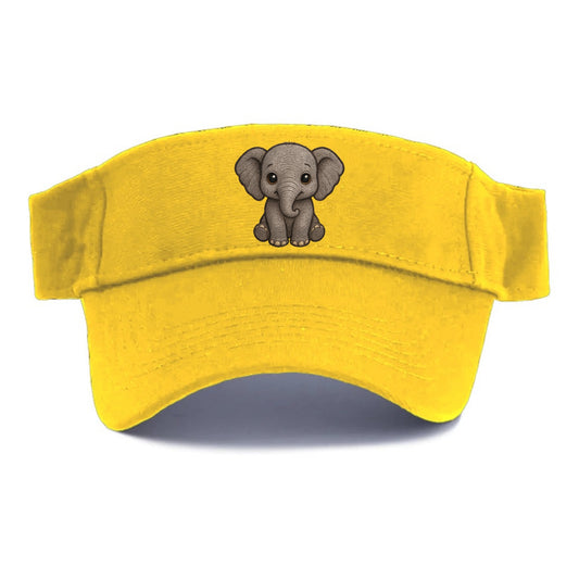 Baby Elephant - gray wrinkly, tiny trunk, large floppy ears, kind dark eyes, front-facing, - Visor