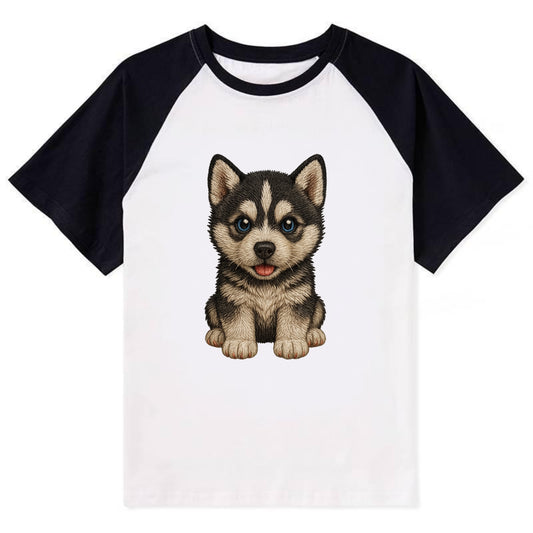 Baby Siberian Husky Puppy - blue or bi-colored eyes, fluffy coat, - Contrast Raglan T-shirt