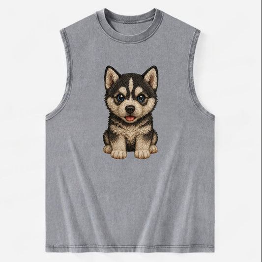 Baby Siberian Husky Puppy - blue or bi-colored eyes, fluffy coat, wolf-like, - Vintage Washed Tank