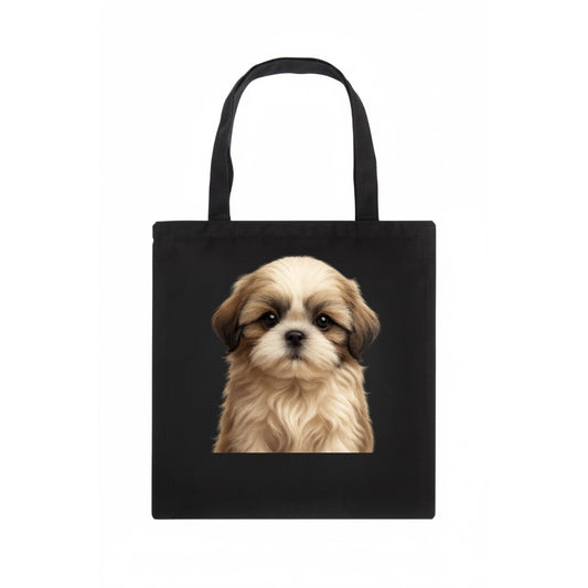 Baby Shih Tzu Puppy - long flowing coat, flat face, big dark eyes, front-facing, royal - Tote Bag