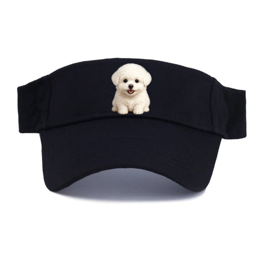 Baby Bichon Frise Puppy - white puffy cloud, dark eyes, happy expression, front-facing, - Visor