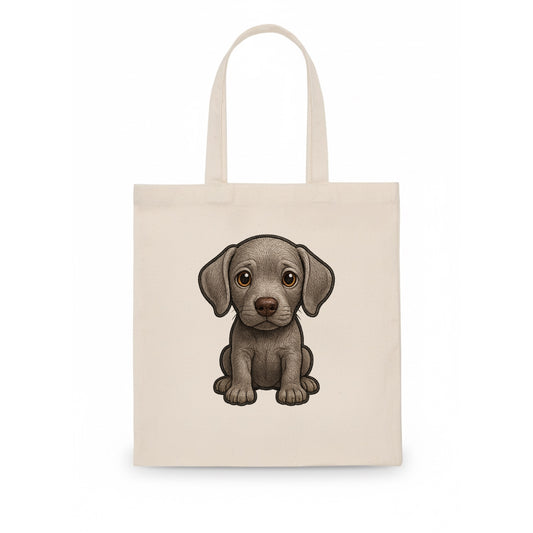 Baby Weimaraner Puppy - silver-gray coat, amber eyes, sleek body, front-facing, ghost - Tote Bag