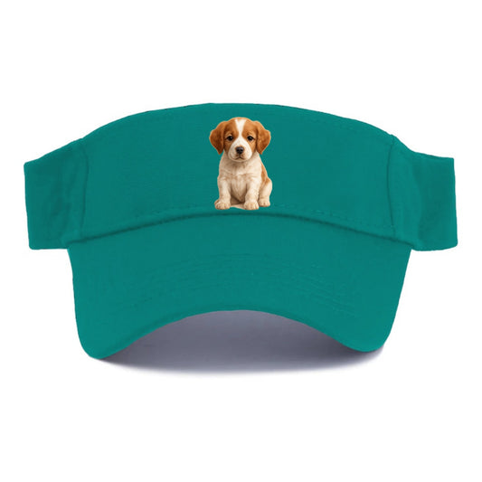 Baby Brittany Puppy - orange and white, compact, bright eyes, feathered, front-facing, bird - Visor
