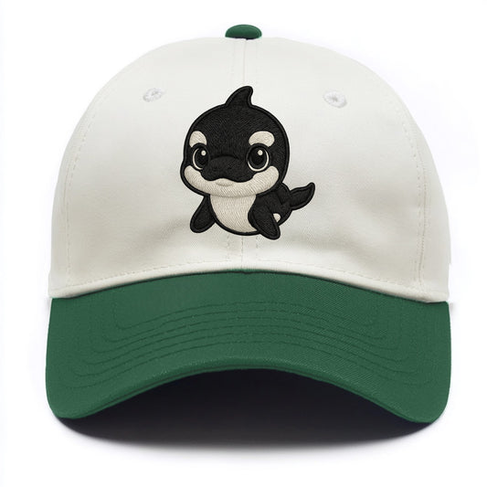 Baby Orca - black and white pattern, white eye patch, front-facing, curious and - Two Tone Cap