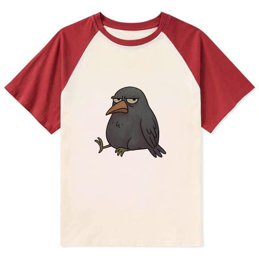 THE CROW JUDGES SILENTLY | Black crow with - Contrast Raglan T-shirt