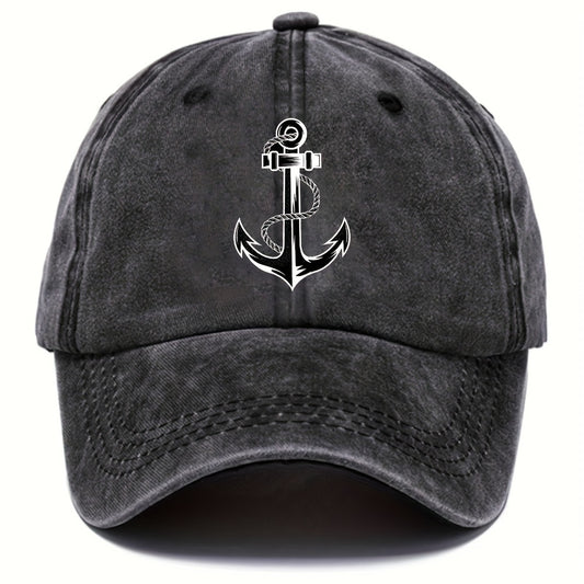 ウォッシュ加工のヴィンテージボートアンカープリントアウトドアスポーツベースボールキャップ