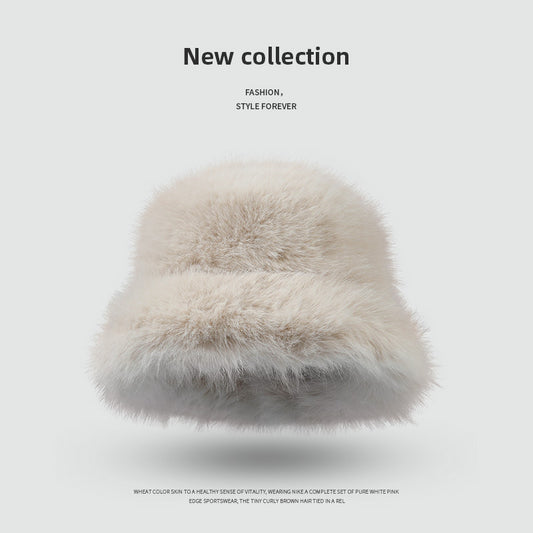 Faux Rabbit Fur Women's Bucket Hat – Winter Plush Thick Warm Fashionable Hat