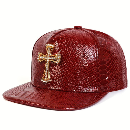 Pandaize ラインストーン メタルクロス ベースボールキャップ 無地 PUレザー ヒップホップ スポーツ帽子 日焼け止め スナップバックハット