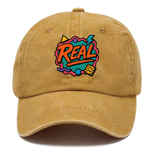 Imperfect brush strokes spelling Real - authenticity over perfection, raw and - Baseball Cap
