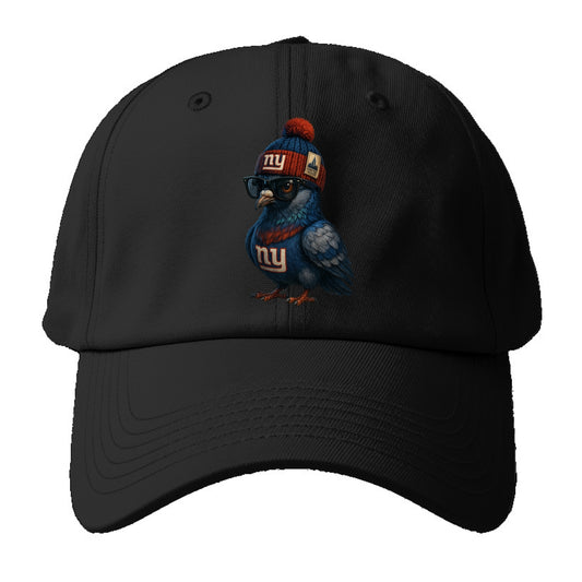 Manhattan Pigeon wearing Giants beanie with Empire State patch and wayfarer - Baseball Cap