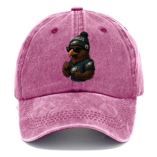 Philly Hawk wearing Eagles beanie with Rocky patch and wayfarer sunglasses - Baseball Cap