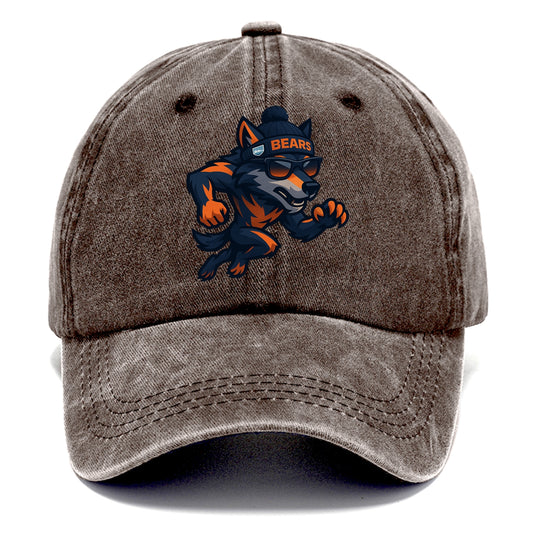 Chicago Wolf wearing Bears beanie with Lake Michigan patch and wayfarer sunglasses - Baseball Cap