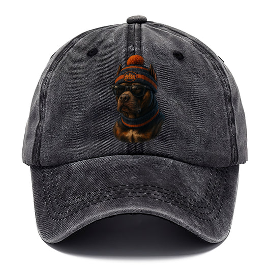 Chicago Pitbull wearing Bears beanie with skyline patch and wayfarer sunglasses - Baseball Cap