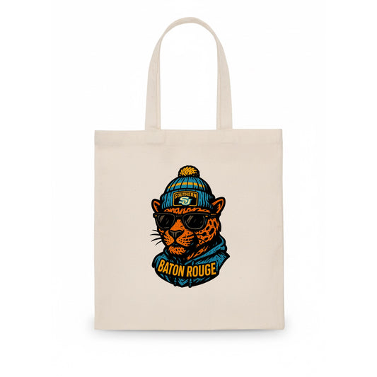 Baton Rouge Jaguar wearing Southern beanie with SU patch - Tote Bag