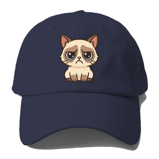 不機嫌な猫の表情が特徴的な、大きな頭にぴったりの野球帽