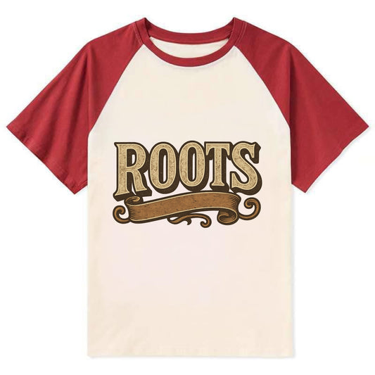 Bold typography design - ROOTS - where you come from, heritage - Contrast Raglan T-shirt