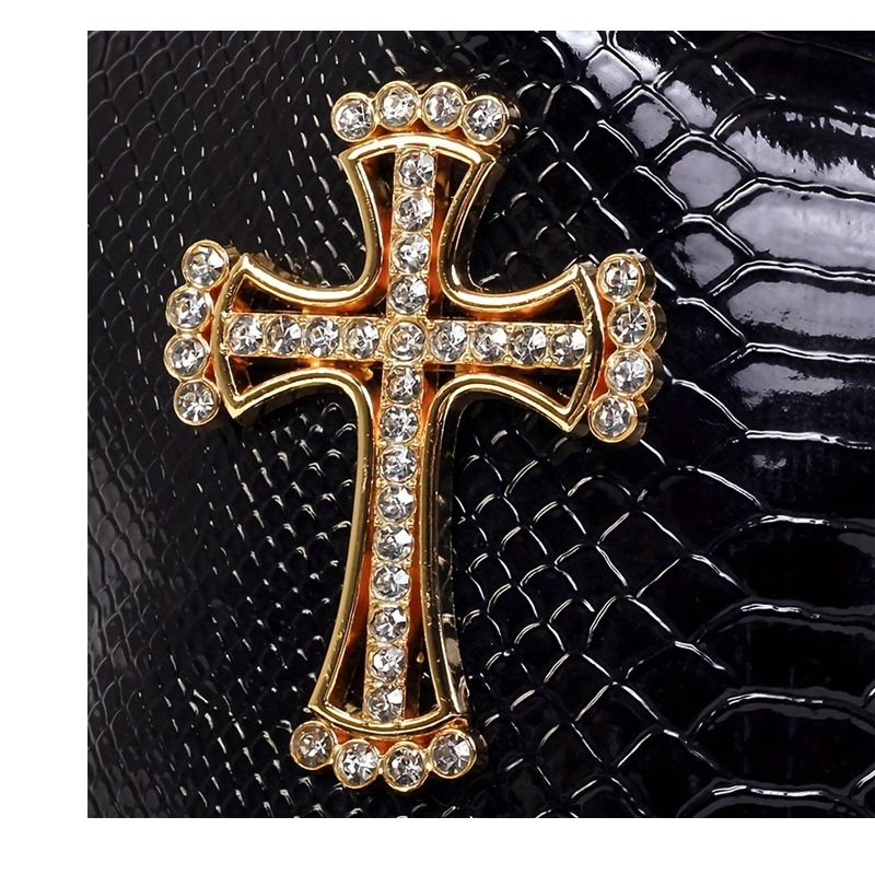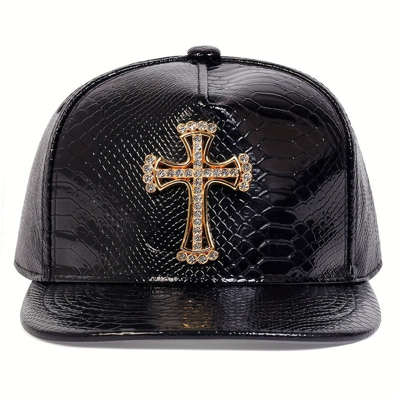 ラインストーン クロス装飾キャップでファッションをレベルアップしましょう。ラインストーンで飾られた輝くメタル クロスを組み込んだスタイリッシュでトレンディなデザインが特徴です。プレミアム PU レザー素材で作られたこのキャップは、耐久性と長持ちを保証し、今後何年もワードローブの定番アクセサリーとして活躍します。
