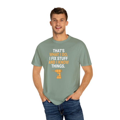 Step into the spotlight of craftsmanship with the "Master Fixer: The Bold T-Shirt for Skilled Handymen." This t-shirt isn't just clothing; it's a badge of honor for those who possess the art of getting things done with their capable hands.
